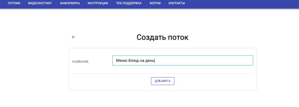 Чтобы добавить новый поток, нажмите соотвествующую кнопку, затем введите название, (например “Меню блюд на день”) и нажмите кнопку “Добавить”.