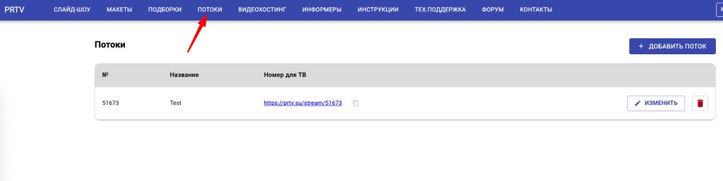 Код потока – уникальный номер потока для запуска на телевизоре через приложение PRTV.