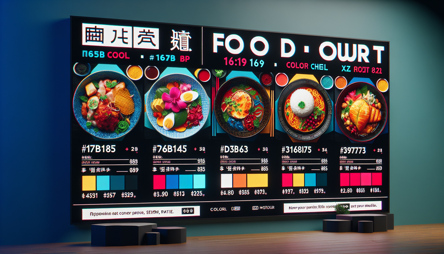 Меню борд. фуд-корт. азиатский стиль.