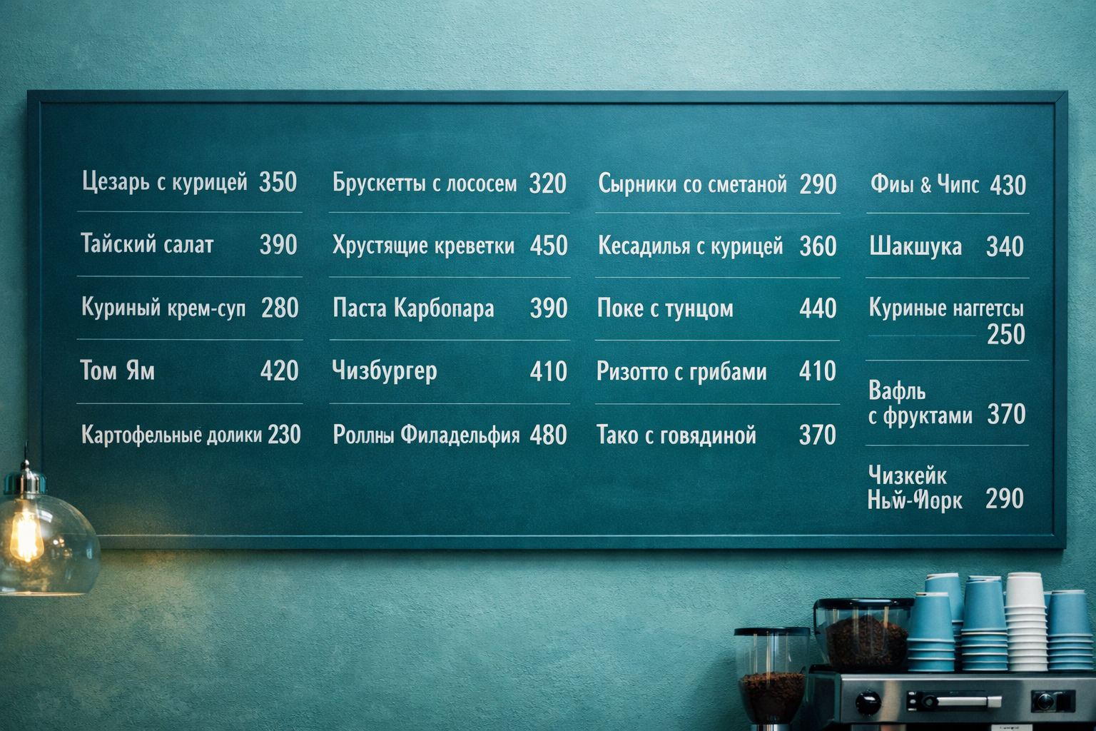 3. Отредактируйте позиции и цены, или выводите их автоматически из QuickResto, Iiko, R_Keeper.
