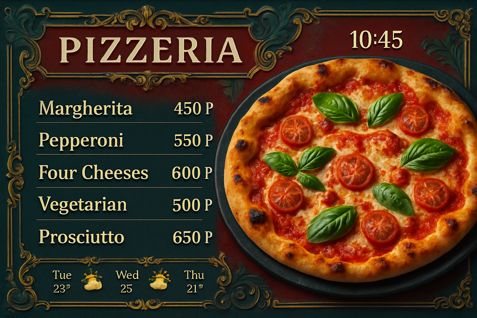 Это всё! Запускайте меню борд в браузере телевизора или через наше приложение.