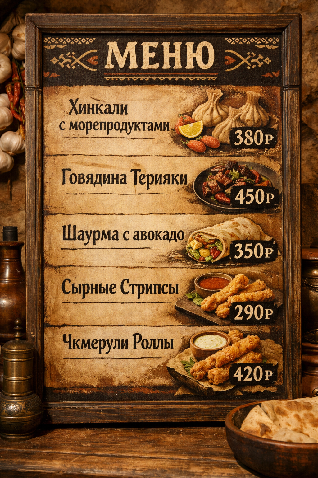 Меню борд. закусочная. кавказский стиль.