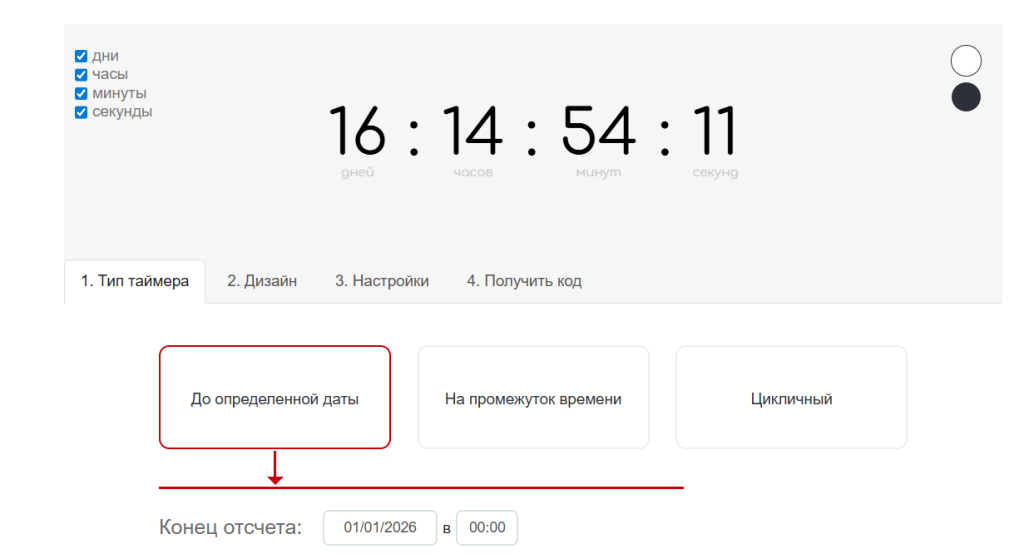 Отсчитывать время до Нового года проще всего с помощью таймера обратного отсчета. Где его найти и как добавить на слайд? В конструкторе нажмите кнопку “HTML”, а потом “Информеры”. Откроется новое окно. Выбираем Таймер обратного отсчета. Устанавливаем нужные настройки и подбираем подходящий дизайн, а затем вставляем получившийся код в конструктор. Теперь вы точно знаете, сколько секунд осталось до наступления нового года.
