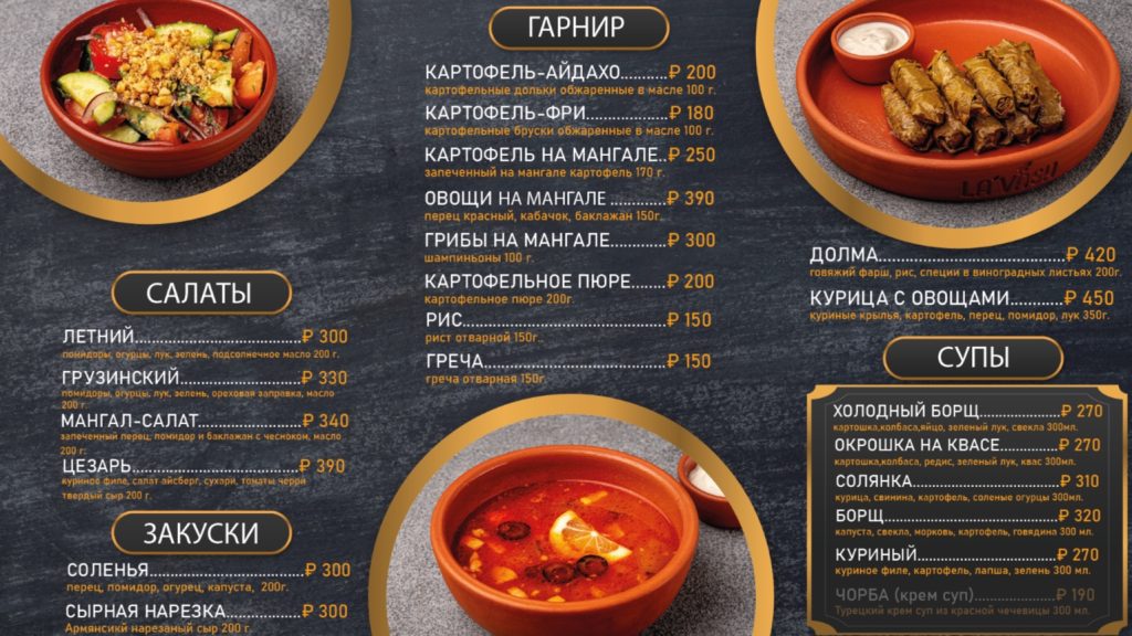 Сделайте слайд-шоу с наименованиями, ценами и граммовкой блюд и меняйте всё одним нажатием при необходимости. Изменения сразу отображаются на экране.